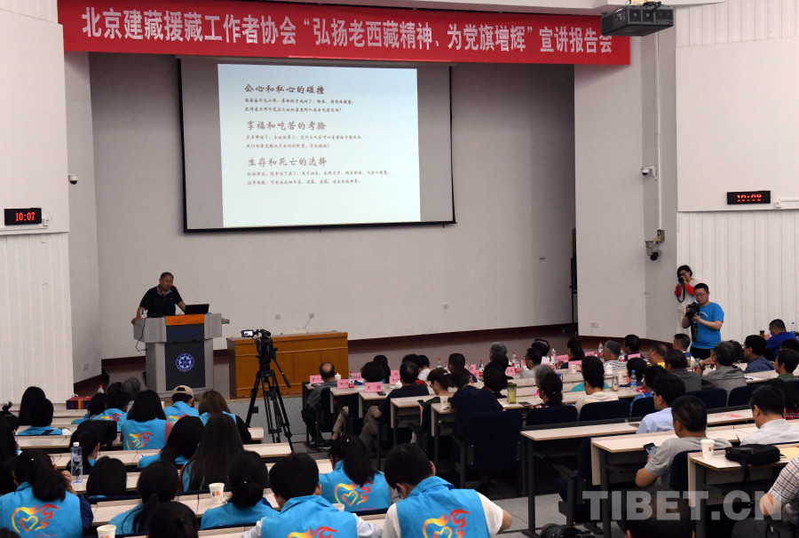 圖為蘆繼兵在協(xié)會所舉辦的“弘揚(yáng)老西藏精神,為黨旗增輝”宣講報告會上作宣講(唐召明2018年5月19日攝)