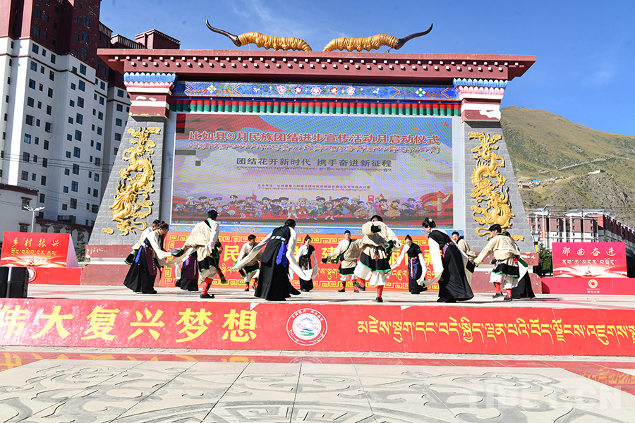 中國西藏網訊 為宣傳黨的民族政策,進一步推動民族團結進步創(chuàng)建工作實踐,8月30日,西藏自治區(qū)那曲市比如縣9月民族團結進步宣傳活動月啟動儀式在縣娜秀廣場舉行。那曲市人大常委會副主任、比如縣委書記李成統(tǒng)等領導出席,比如縣委常委張興富致詞。各鄉(xiāng)鎮(zhèn)黨政負責人、縣(中)直各單位負責同志、農牧民黨員、公安干警、醫(yī)護人員、寺廟僧尼、學生、商戶等各行各業(yè)代表共200余人參加。