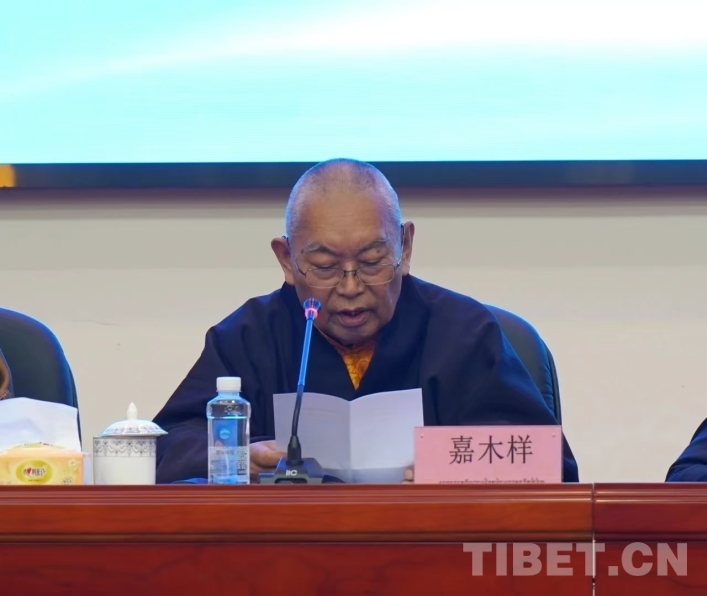 圖為中國藏語系高級佛學院院長嘉木樣致辭。章淑貞 攝