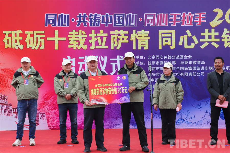 “同心?共鑄中國(guó)心”是由步長(zhǎng)制藥發(fā)起,中央統(tǒng)戰(zhàn)部、國(guó)務(wù)院僑辦和國(guó)家衛(wèi)生健康委員會(huì)指導(dǎo),中國(guó)西藏文化保護(hù)與發(fā)展協(xié)會(huì)和北京市紅十字基金會(huì)聯(lián)合主辦的大型公益活動(dòng)。為響應(yīng)黨中央提出的“健康中國(guó) 精準(zhǔn)扶貧”的戰(zhàn)略部署,在中央統(tǒng)戰(zhàn)部的支持下,在同心共鑄公益基金會(huì)的指導(dǎo)下,自2014年啟動(dòng)“同心·共鑄中國(guó)心·同心手拉手”活動(dòng),以全國(guó)醫(yī)藥零售行業(yè)、流通商業(yè)志愿者為主,以困難家庭學(xué)生為主要資助對(duì)象,開展定點(diǎn)、定向的愛心志愿服務(wù)。(中國(guó)西藏網(wǎng) 記者/賈華加 德吉卓瑪)
