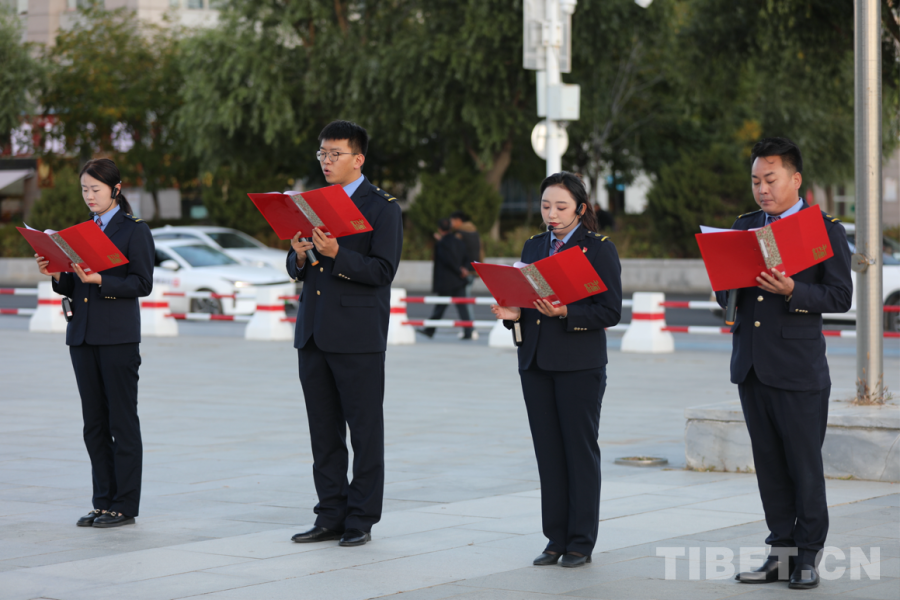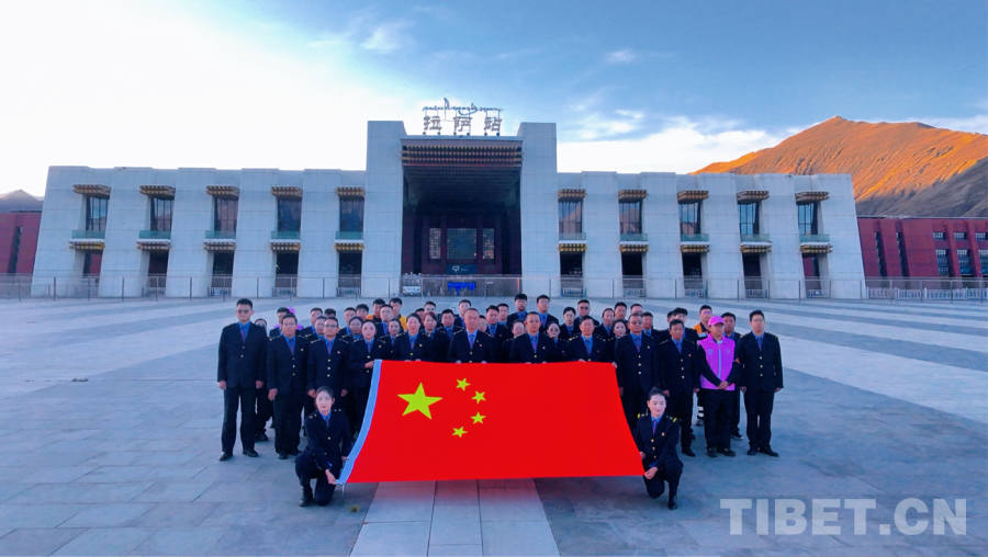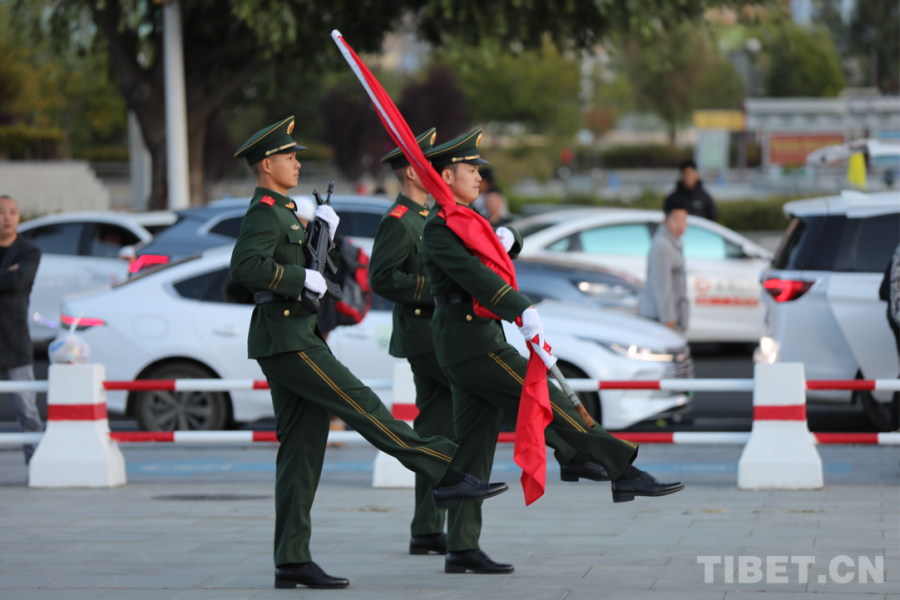 中國西藏網訊 在新中國成立75周年這一榮耀時刻,拉薩火車站舉行了一場莊嚴而隆重的升國旗儀式。10月1日上午8時整,雄渾的國歌聲奏響,駐站武警儀仗隊邁著整齊劃一的步伐,護衛(wèi)著五星紅旗走向國旗基座。在火車站干部職工的凝視下,五星紅旗冉冉升起,那是祖國繁榮昌盛的象征。