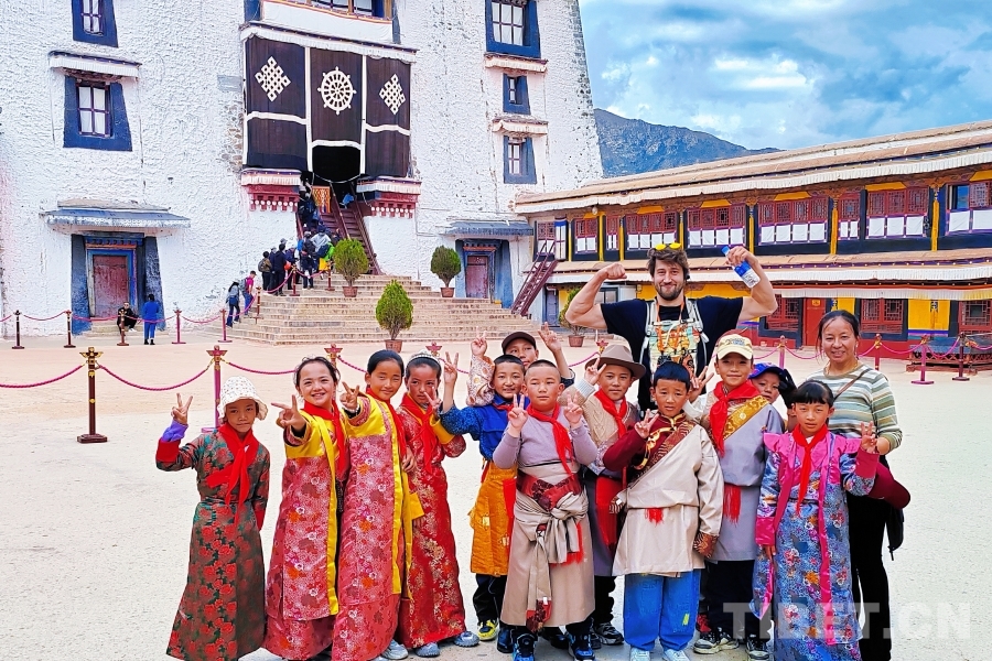 旅程的第一站,孩子們來(lái)到布達(dá)拉宮。跟隨導(dǎo)游的指引,孩子們拾級(jí)而上,感受布宮。特色的建筑,珍貴的壁畫(huà)和唐卡,大家通過(guò)文物學(xué)習(xí)其背后蘊(yùn)含的深厚歷史文化,增進(jìn)對(duì)民族文化的認(rèn)識(shí)。與此同時(shí),孩子們身上的藏裝也成了沿途一道亮麗的風(fēng)景,與布達(dá)拉宮相映成趣,吸引了眾多游客的目光。