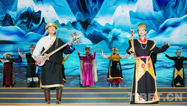以“妙音入夢”為序,遠古神話為引,演出在央吉瑪?shù)挠茡P歌聲中拉開序幕。隨后,“藝承千年”篇章集中展示了國家級非物質(zhì)文化遺產(chǎn)、西藏的代表性傳統(tǒng)樂器扎念的發(fā)展與傳播脈絡,阿里、日喀則、拉薩、林芝等地的扎念彈唱藝術(shù)一一登上舞臺。