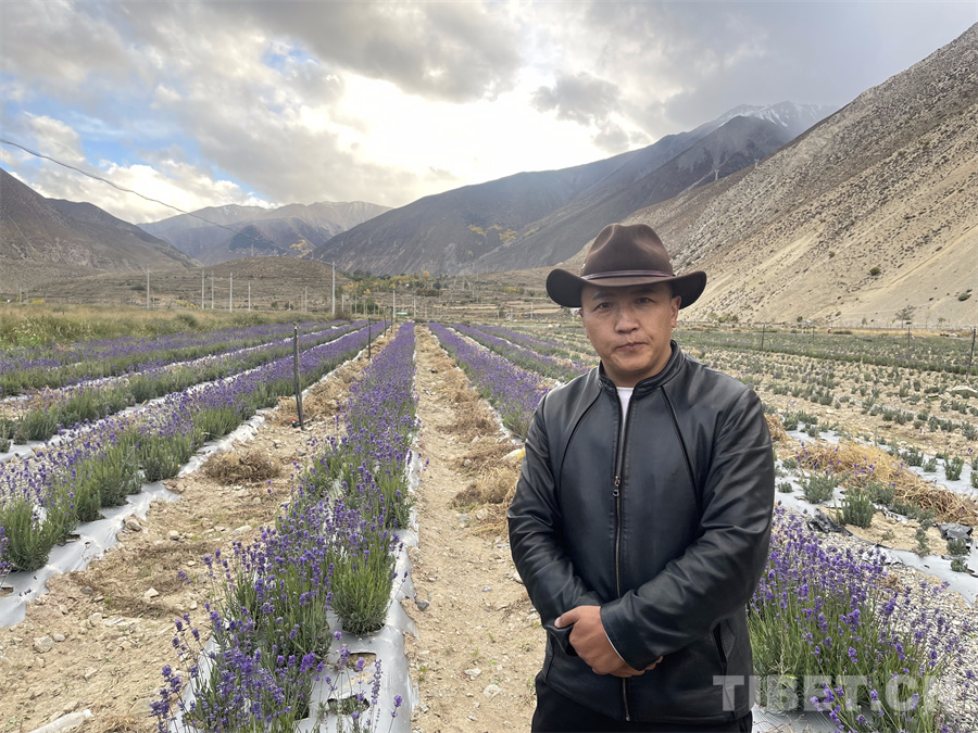 圖為八宿縣吉達(dá)鄉(xiāng)黨委書記仁青貢布站在大片的薰衣草田間 攝影:王妍丹