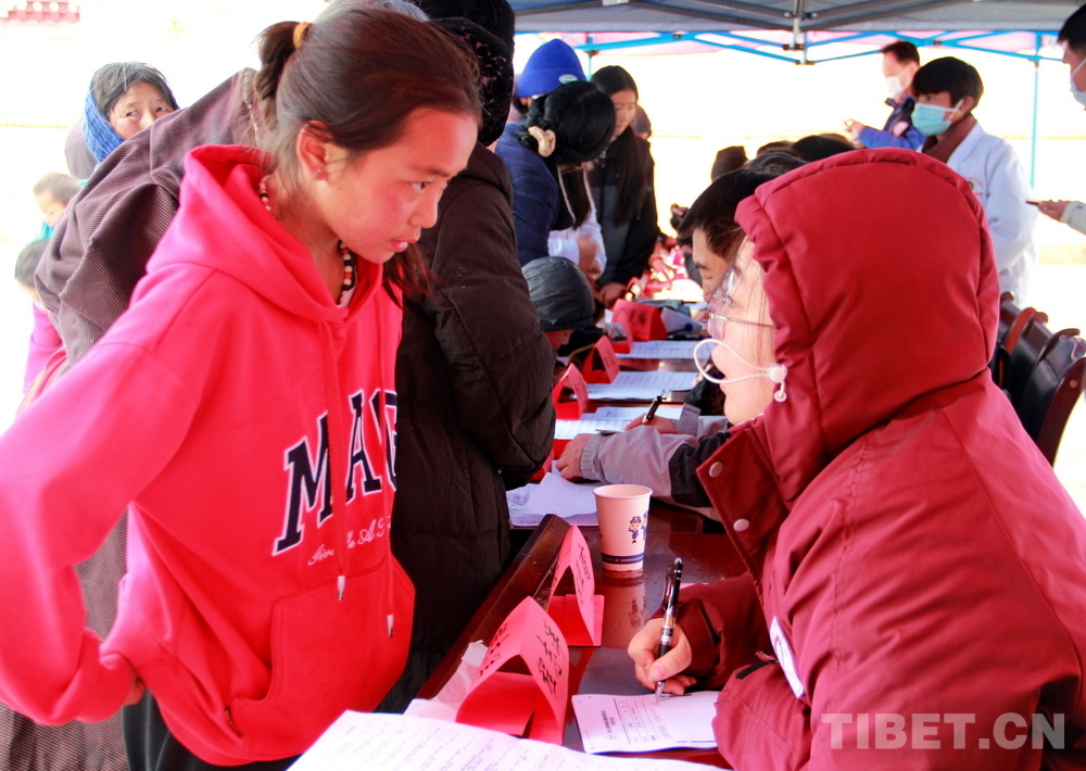 高原的大雪天,在室外即便來回走動也感覺格外寒冷。前來問診的患者絡(luò)繹不絕,醫(yī)務(wù)志愿者們堅守崗位,身披雪花,腳踩積雪,在翻譯的幫助下不停接診,一坐就是大半天。有的醫(yī)務(wù)志愿者專心接診,渾然不知衣服上已經(jīng)積雪;有的醫(yī)務(wù)志愿者發(fā)現(xiàn)患者不太理解疾病的分科,就同時擔(dān)起了分診工作;有的醫(yī)務(wù)志愿者自身高反強(qiáng)烈,吸著氧也要堅持接診……