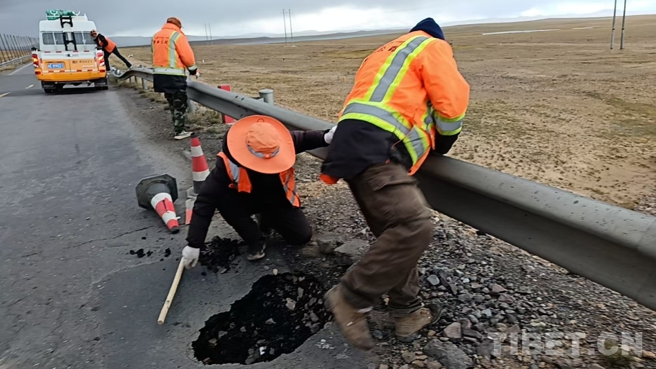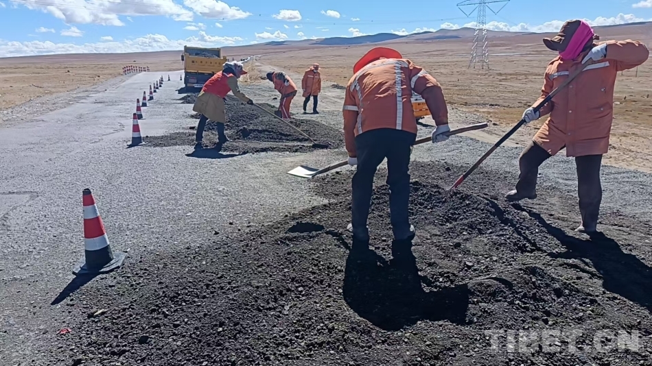 受低溫限制,唐古拉山路段的油路養(yǎng)護(hù)季節(jié)性非常強(qiáng),每年的5至10月是養(yǎng)護(hù)的黃金時(shí)間。為了能在有限的時(shí)間內(nèi)更好地養(yǎng)好公路,每年這個(gè)季節(jié),我和工友們都要在凌晨四五點(diǎn)出發(fā),一絲不茍地進(jìn)行日常巡查,對破損的路面進(jìn)行及時(shí)修補(bǔ)。每天工作超過十個(gè)小時(shí),餓了吃些糌粑,渴了喝點(diǎn)酥油茶,累了就靠在車上休息一會(huì)兒。春天,我們處理路面裂縫;夏天,我們清理塌方;冬天,我們與冰雪戰(zhàn)斗。我們?nèi)硇耐度?,用青春和汗水守護(hù)這條公路,確保這條至關(guān)重要的運(yùn)輸動(dòng)脈能夠抵御極端惡劣氣候的考驗(yàn),讓每一輛過往車輛都能安全順暢通行。