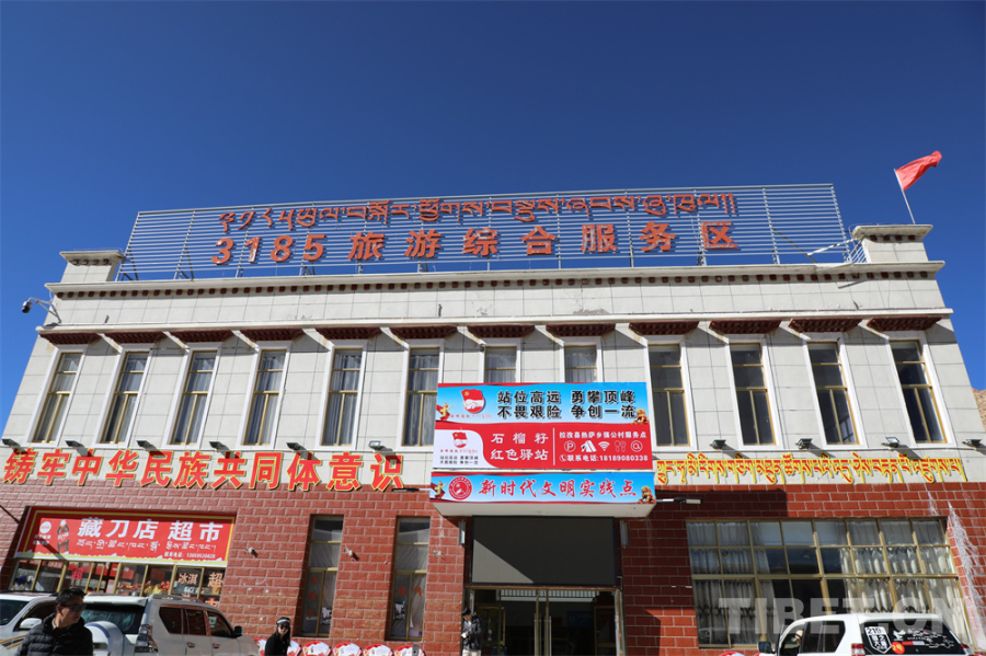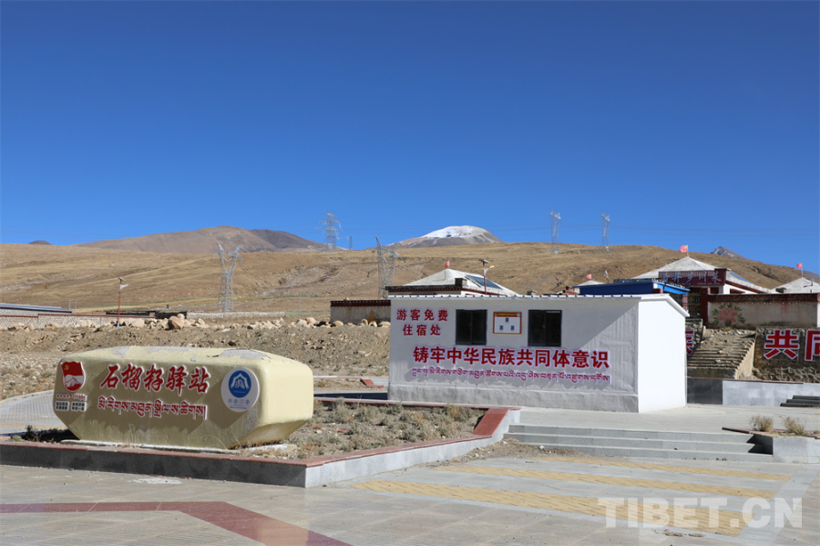 在西藏日喀則市拉孜縣熱薩鄉(xiāng)強公村,318國道5000公里紀念碑廣場上很多游客在三五成群拍照留念,廣場旁邊的樓房里也熱鬧非凡。樓里的石榴籽紅色驛站里,休息、喝水、充電等服務一應俱全,還有當?shù)鼐用裨诖虽N售手工藝品、食品、特產等?!袄淇扇∨?、熱可納涼、渴可喝水、急可如廁、累可歇腳、傷可用藥”的“紅色驛站”也吸引更多游客在此駐足。