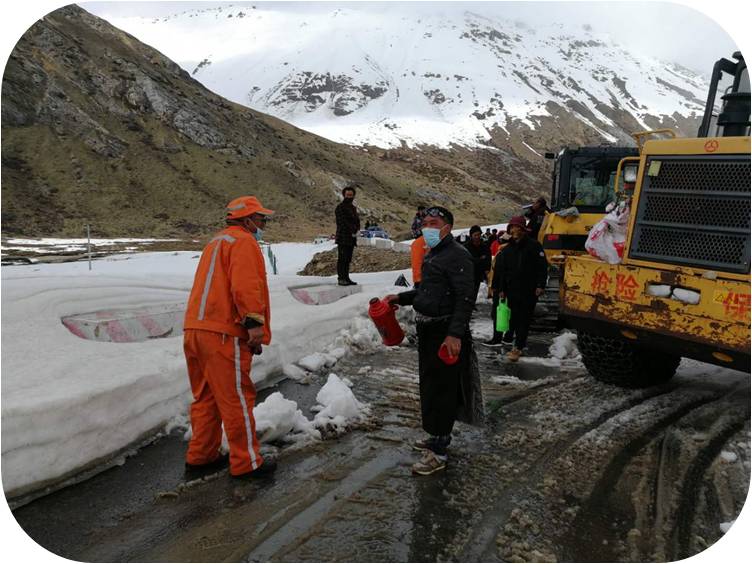 2018年,單位新接管波密縣境內(nèi)省道S303線。為打破“冬季封路禁行”的慣例,確??涤襦l(xiāng)人民群眾通往波密縣城必經(jīng)之路的全年暢通,決定設(shè)立果扎拉山保通點(diǎn),全年全天開啟駐守保通模式。