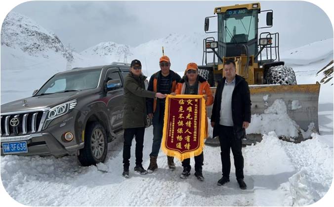 “能不能幫幫忙,讓我們過一輛車子就行,我老婆闌尾炎犯了,疼得要命,我想趕緊送她去縣醫(yī)院”。這是我們保通過程中另一個故事。2022年5月的一個夜晚,正當(dāng)我們完成果扎拉山頂?shù)谋Mㄈ蝿?wù),結(jié)束工作準(zhǔn)備返回保通點(diǎn)時,一位村民攔住了我們的去路。當(dāng)時已是晚上8點(diǎn)多鐘,又趕上山頂突發(fā)約3500立方米的大型雪崩,連軸轉(zhuǎn)一天的機(jī)械,油也用得差不多了。聽到村民說車?yán)镉胁∪?,我與其他同事顧不上吃晚飯,更顧不上休息,商量一致后,決定一起連夜推通雪崩。當(dāng)時已是深夜,室外零下6、7度,能見度不足5米,即便是開著車燈,在一大片白茫茫的雪地里,也依然看不太清楚前面的道路。推到一半,車子突然沒油了,其他保通人員趕忙翻過雪崩,去另外一臺機(jī)械里倒油出來。然后再翻過雪崩,添上柴油繼續(xù)推雪。當(dāng)最后一鏟雪被推完,已是凌晨兩點(diǎn)多。為確保車?yán)锊∪税踩律?,得到及時救治,我在前面開路,一直將其送至山腳下,才放心返回保通點(diǎn)就餐休息。