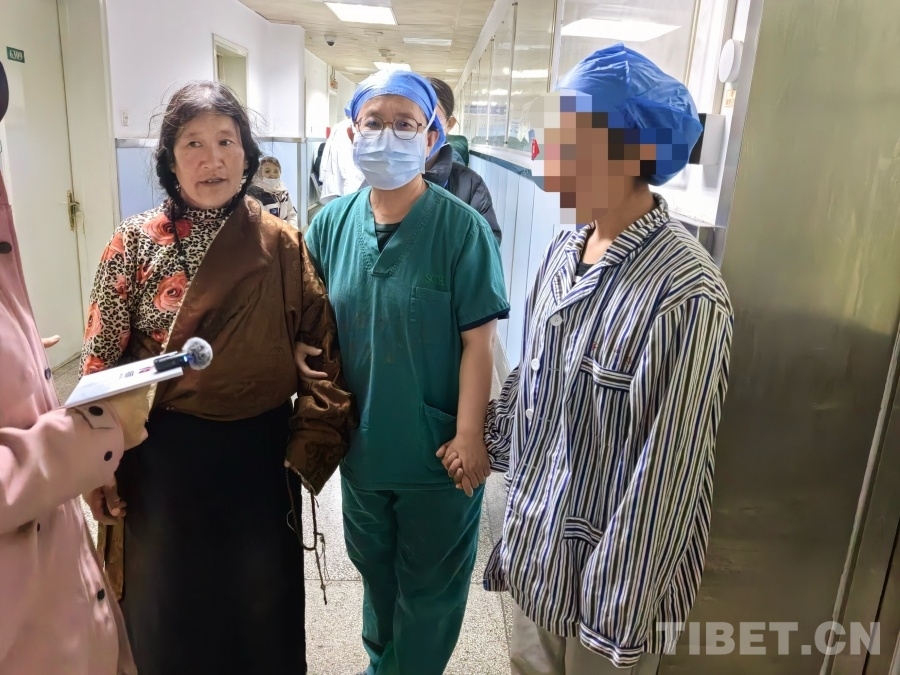 圖為手術(shù)剛剛結(jié)束后,卓瑪?shù)膵寢屌c卓瑪和醫(yī)生交流 攝影:王帥