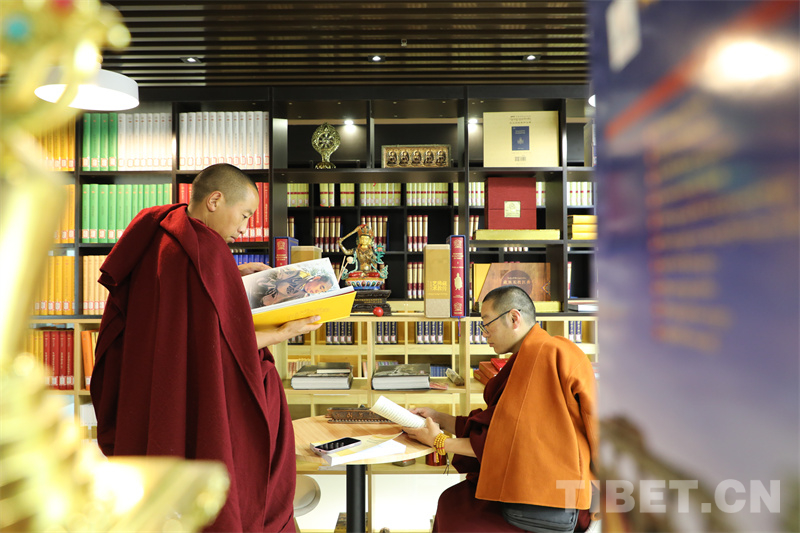 學(xué)員們在環(huán)境雅致、設(shè)施完善的中國藏語系高級佛學(xué)院圖書館里“打卡”。該圖書館擁有豐富的藏文文獻資源,為學(xué)員們提供了舒適的交流場所和學(xué)習(xí)環(huán)境。西藏佛學(xué)院的學(xué)員們也紛紛投入知識的海洋進行閱覽。