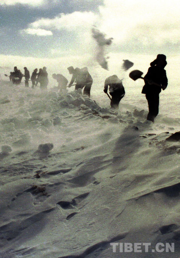 《109道班工人在風雪中鏟雪開路》 作者:唐召明