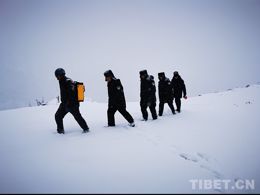 圖為色邊境派出所移民管理警察在雪地救援