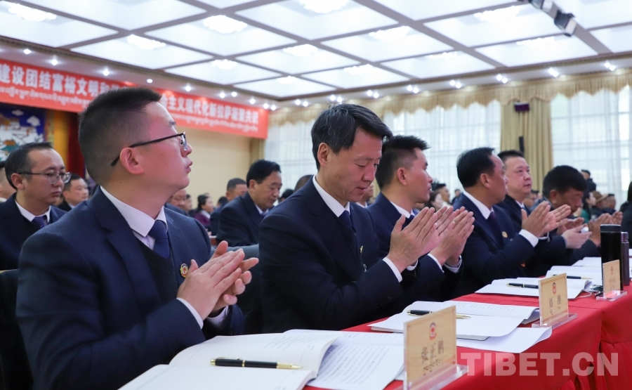 拉薩市政協(xié)主席江擁洛追代表政協(xié)第十二屆拉薩市委員會常務(wù)委員會向大會作工作報告。