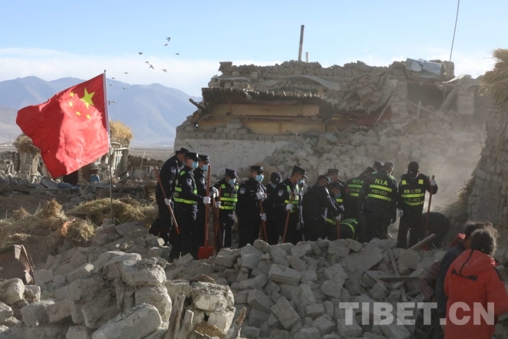中國西藏網訊 1月7日9時5分,在西藏日喀則市定日縣措果鄉(xiāng)附近發(fā)生6.8級地震,震源深度10千米。西藏出入境邊防檢查總站移民管理警察在西藏日喀則市定日縣長所鄉(xiāng)玉白村參與救援及安置工作。五星紅旗之下,是國家對災區(qū)群眾的守護,亦是災區(qū)群眾對黨和國家救援力量的期盼。有五星紅旗的地方就有信念的燈塔,這是災區(qū)一線的守望!(中國西藏網 通訊員/郭遠敬)