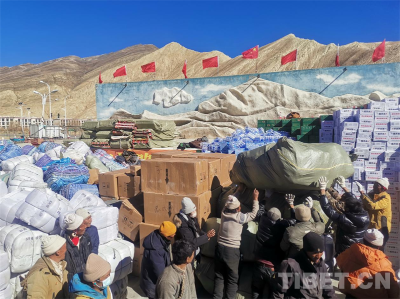 當(dāng)馳援物資到達(dá)長(zhǎng)所鄉(xiāng)后,當(dāng)?shù)?/span>受災(zāi)群眾紛紛主動(dòng)上前幫忙卸貨,感謝來自首都北京“老西藏”的惦念和支持。