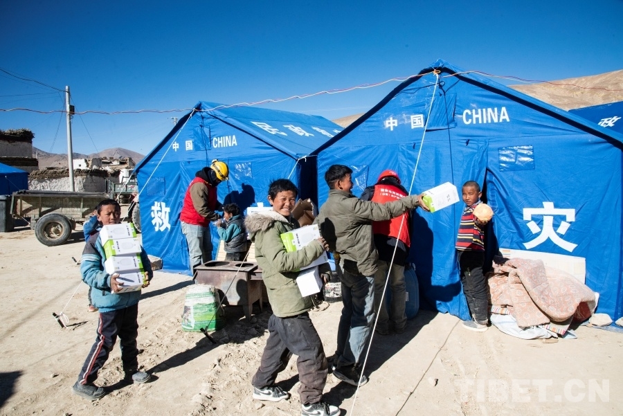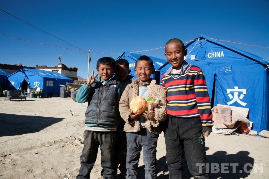 “我們家里的房子全部倒塌了,但好在沒人受傷。”“吃飯、睡覺都沒有任何問題,就是帳篷里還沒有通電?!薄叭绻軌蛟S一個愿望,我希望這場地震沒有發(fā)生。”措昂村的小男孩們將腳下的足球“按下暫?!?,向記者講述著他們受災(zāi)三天的生活情況。三名穿著紅馬甲的救災(zāi)人員走進安置點,小男孩們迅速將他們圍了起來。