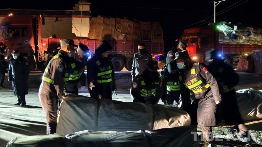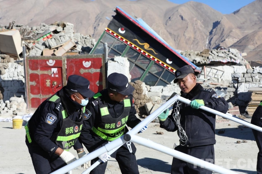 定日縣長所鄉(xiāng)雜村是此次地震受災(zāi)最嚴重的區(qū)域之一,為了保證寒冷的天氣下群眾有避風休息處所,1月7日20時,參與救援的日喀則邊境管理支隊增援民警,等救災(zāi)物資抵達后迅速展開帳篷搭建工作。