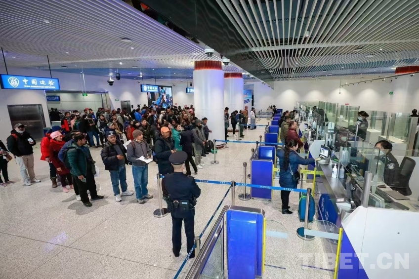 圖為拉薩至尼泊爾加德滿(mǎn)都國(guó)際航線正式復(fù)航通關(guān) 攝影:蔣美靈