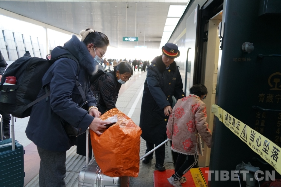 不一會,等待檢票上車的人排起了長隊(duì),他們是來拉薩朝圣結(jié)束準(zhǔn)備回家的藏族老人,他們是結(jié)束了一年工作回鄉(xiāng)過年的外地務(wù)工人員,他們是來拉薩探親的母子,他們是去成都與家人團(tuán)聚的母女三人……短短15節(jié)車廂,囊括了中華民族各族群眾在春節(jié)來臨時(shí)短暫相聚于火車上的世間百態(tài):大包小包的行李、火車上準(zhǔn)備的食物、手中的轉(zhuǎn)經(jīng)筒、和媽媽撒嬌的孩子、手機(jī)上跳動(dòng)的畫面……