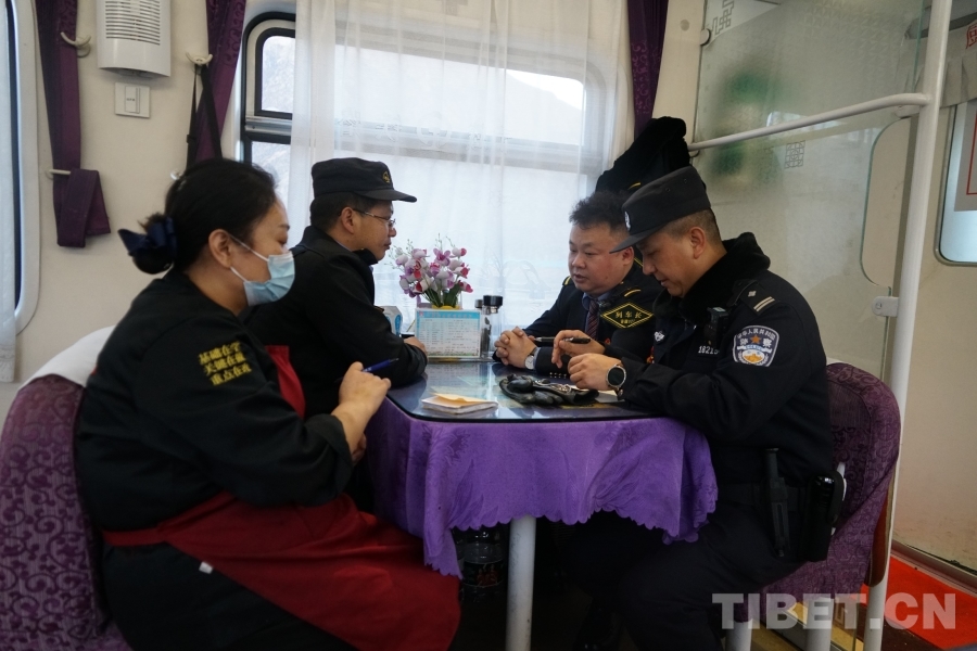 “你有沒有發(fā)現(xiàn)上車的每個(gè)人都是喜洋洋的樣子?這個(gè)能看出來的。這個(gè)時(shí)間出藏的列車嘛,意味著大家要去團(tuán)聚嘛!等到年后,進(jìn)藏的列車上,大家的表情就更凝重一些。我干那么多年了,一眼就能看出來!”“那您呢?您是喜洋洋還是憂郁呢?常年奔波于列車上,還是高海拔的列車上,不能陪家人過年,您會有愧疚嗎?”李警長眼神略顯憂傷后又打起精神來:“想回家過年!不過我要去餐車開餐車會議了,我們‘五位一體’必須全部到場?!?/span>