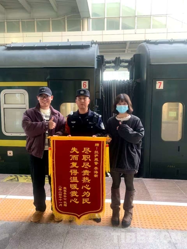 圖為旅客為李警長送錦旗。2024年11月,李警長在列車巡檢時(shí)發(fā)現(xiàn)一部被旅客遺失的手機(jī),在與失主取得聯(lián)系后將手機(jī)送還?!∈茉L者供圖
