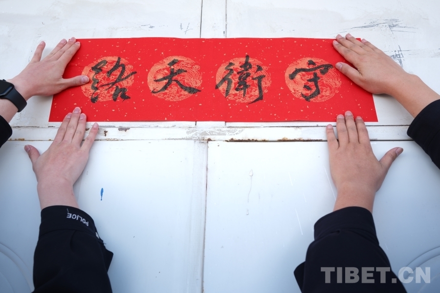 圖為駐站民警在新春來(lái)臨之際,用心寫下最美好的愿望“守衛(wèi)天路”,用行動(dòng)保衛(wèi)鐵路運(yùn)輸安全。攝影:賀瑞明