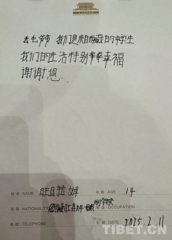 2025年2月11日,西藏阿里地區(qū)邊境縣初中學(xué)生瞻仰毛主席紀(jì)念堂后的留言 攝影:張豫平