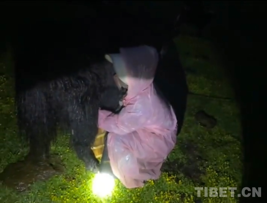 到了牛圈里,我發(fā)現(xiàn)大部分的牦牛都把腦袋斜靠在自己的肚子旁,閉著眼睛睡覺呢。我想很多人都沒見過牦牛睡覺的畫面吧?它們睡覺不是站著,而是躺下后前后腿全部收緊,把自己裹成一團(tuán),頭不是往前伸著,而是斜著貼緊自己的身體。過了一會(huì)兒,似乎是小牛犢們意識(shí)到了自己馬上就可以喝到媽媽的奶了,牛圈里開始傳來此起彼伏的叫聲;另一邊的牛媽媽們也開始作出回應(yīng)。雖然在我聽來都是同一種叫聲,但在它們那兒似乎有著完全不一樣的意義。這是屬于它們自己的“加密語(yǔ)”。就這樣,在一聲聲“哞——哞——”的叫聲中,我們開始了今天的工作。