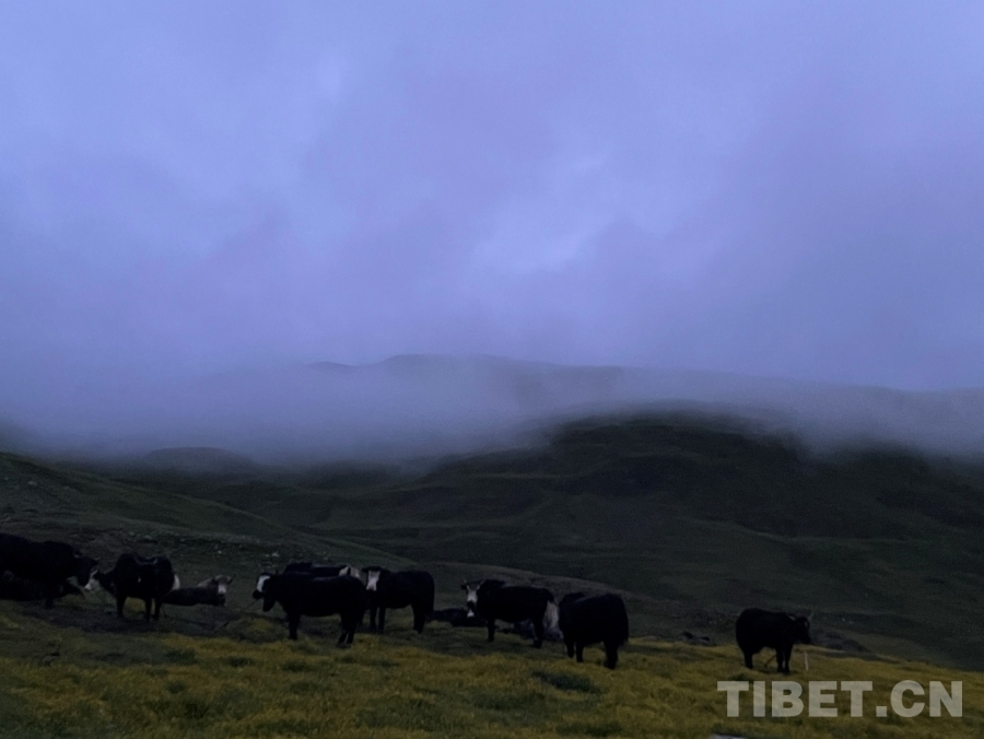 過了一會(huì)兒,天邊漸漸卷起了一個(gè)白邊,然后越來越大。后來,遠(yuǎn)處的山、河、帳篷、牛羊都逐漸清晰了。這時(shí),我們的工作也接近尾聲。一回頭,看到我家?guī)づ耥數(shù)臒焽枥锷鹆搜U裊炊煙,我知道,爸爸已經(jīng)準(zhǔn)備好了早餐,等著我們回家了。(中國(guó)西藏網(wǎng) 實(shí)習(xí)生/扎西央措)