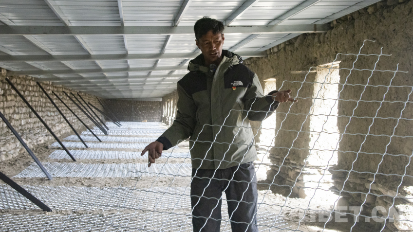 圖為定日縣長所鄉(xiāng)嘎旦村村委會(huì)主任頓珠向記者介紹村集體畜圈的規(guī)劃 攝影:趙振宇