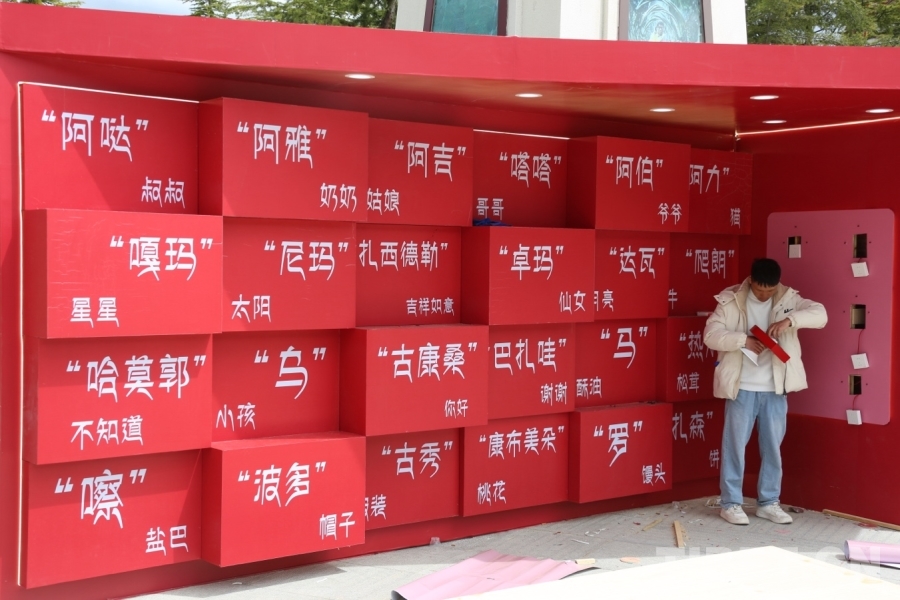 開幕式主會場經(jīng)過近一周加班加點的搭建,已可見雛形,開幕式主會場舞臺以桃花花瓣形狀設(shè)計LED背景屏與舞臺,會場周邊也做了諸多氛圍設(shè)計,包括各縣區(qū)特色展房與展臺。