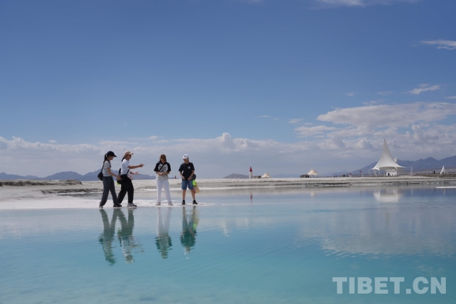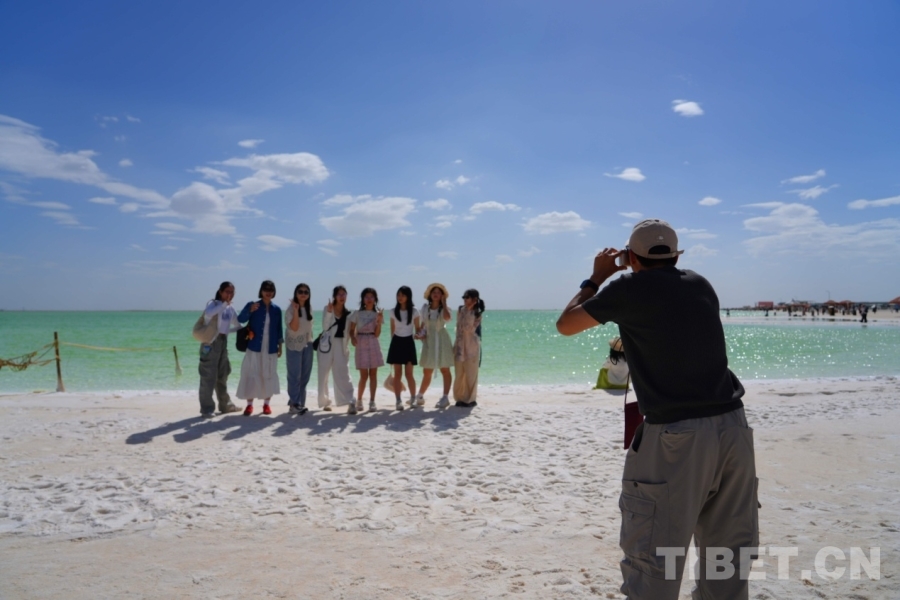 在海西蒙古族藏族自治州格爾木市,海拔2670米的察爾汗鹽湖,翠綠之美令人震撼,風(fēng)起波動(dòng),湖面如碎鉆鋪就的星河;天然形成的鹽花形態(tài)各異宛如珊瑚叢生,在陽(yáng)光下,閃耀著璀璨的光芒;浮在鹵水上的“萬(wàn)丈鹽橋”延伸至天際,橫跨湖面,還有周邊的現(xiàn)代化采鹽船,輸鹵管道,車來(lái)車往,工業(yè)設(shè)施與自然景觀形成強(qiáng)烈對(duì)比。來(lái)自妙法寺劉金龍中學(xué)三位女生欣賞著美景,也紛紛討論這次令人驚嘆的“自然課堂”。鐘澄情同學(xué)不自禁感慨:“這里跟網(wǎng)上宣傳的一樣美!就像是上帝打翻的蘋果汁?!痹袂缤瑢W(xué)驚嘆道:“曾經(jīng)我只聽(tīng)說(shuō)過(guò)茶卡鹽湖,來(lái)到這里才知道察爾汗鹽湖是中國(guó)最大、世界第二大的鹽湖,面積相當(dāng)于56個(gè)茶卡鹽湖,鹽儲(chǔ)量可以讓全球80億人吃上兩千年?!倍S馨月同學(xué)更加震撼這里工業(yè)與自然相互交融的獨(dú)特魅力,直呼這是一座真正的“寶庫(kù)”!