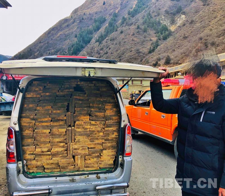 中國(guó)西藏網(wǎng)訊 1月5日下午,四川省甘孜州新龍縣森林公安局上占派出所民警在新龍縣查獲一車(chē)險(xiǎn)遭非法變賣(mài)的木材。