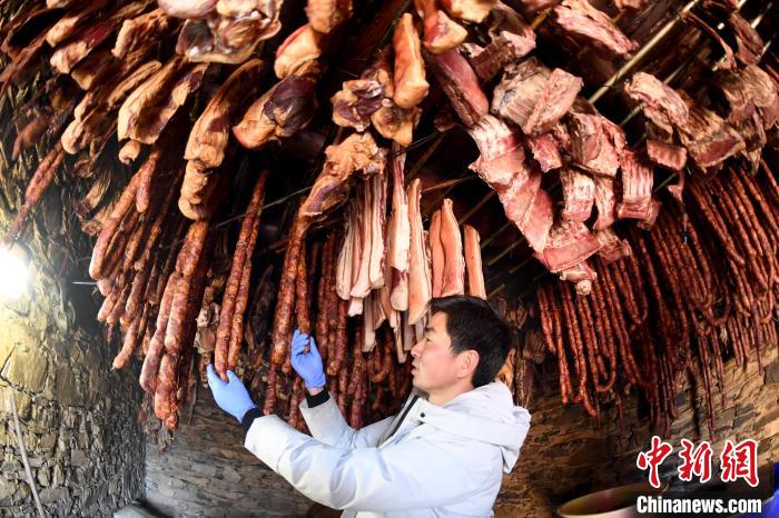 2020年春節(jié)將至,“云端餐廳”的房檐下,掛滿了香腸臘肉、牦牛肉干、風干土雞,這都是村民準備銷售的年貨。