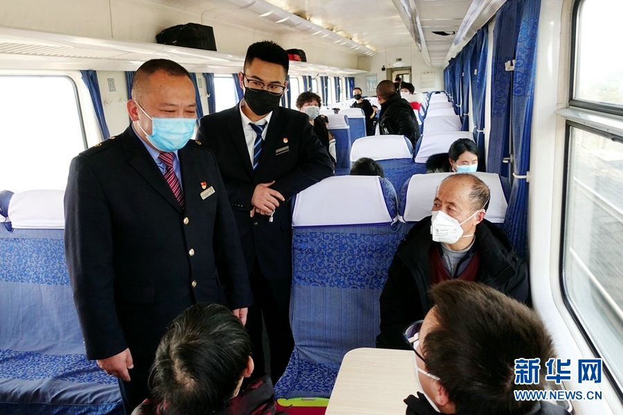 西寧客運(yùn)段職工問(wèn)詢(xún)旅客身體情況。新華網(wǎng) 郝寶君 攝
