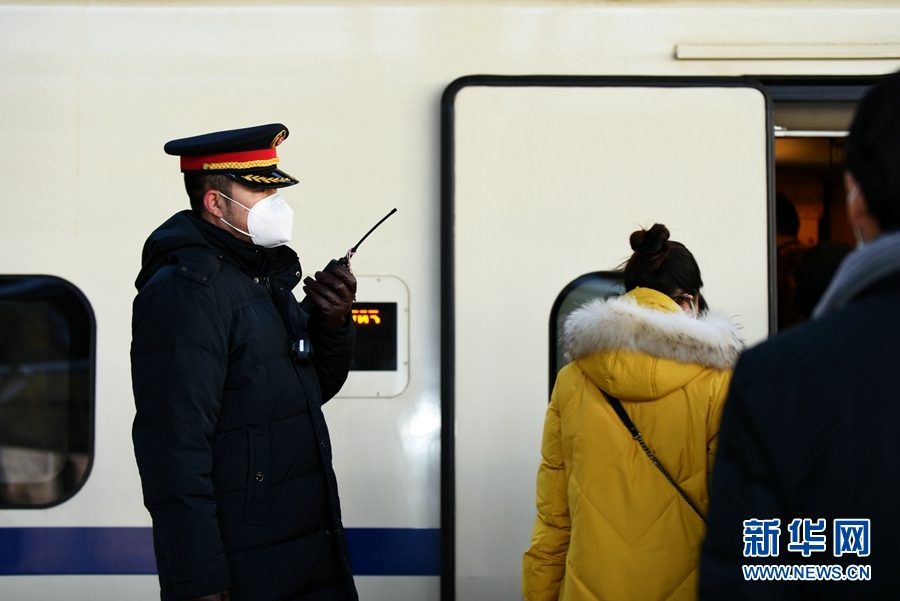 工作人員引導(dǎo)旅客乘坐列車(chē)。新華網(wǎng) 李俊 攝