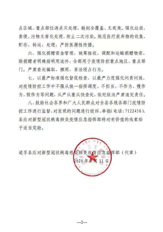 通告中還鼓勵社會各界和廣大人民群眾對全縣各級各部門疫情防控工作進行監(jiān)督,對發(fā)現(xiàn)的問題進行投訴、舉報(電話:0836—7122450), 縣應對新型冠狀病毒肺炎疫情應急指揮部將對有價值的線索給予適當獎勵。(圖據(jù)道孚縣委宣傳部官方微信)