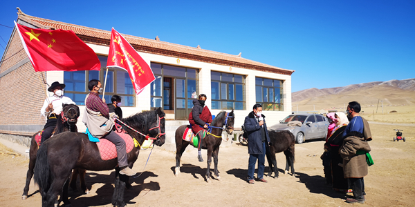 宣傳隊騎著馬開展宣傳。(黃南州委組織部供圖)