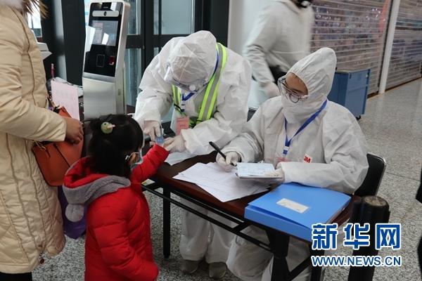 醫(yī)護人員為進出港旅客測溫,持續(xù)做好疫情防控。