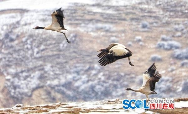 四川省若爾蓋2000多只黑頸鶴本月中旬前將全部南下越冬