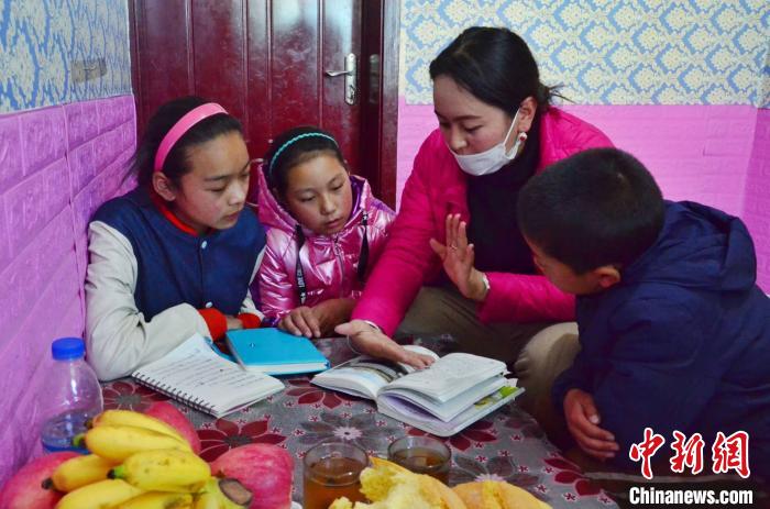 教室內(nèi),孩子們戴著口罩,在老師的帶領(lǐng)下,認(rèn)真學(xué)習(xí)。著曉鄉(xiāng)中心寄校副校長久美介紹,學(xué)校覆蓋全鄉(xiāng)6個行政村,目前有297名小學(xué)生,全部是寄宿生,每周日下午入校、周五下午離校。除此外,學(xué)校還在班多村設(shè)有一個教學(xué)點,有兩名老師和60名學(xué)生。