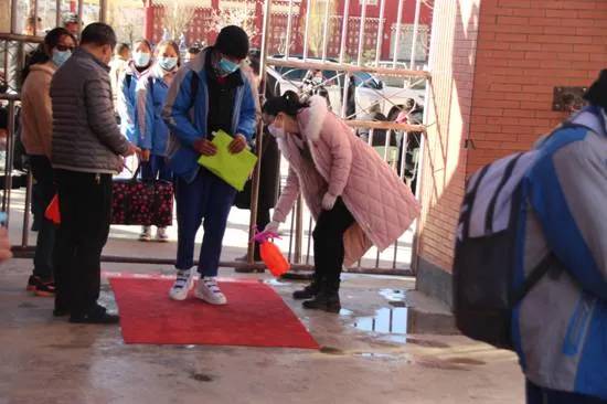 早晨八點(diǎn)三十分,學(xué)生陸續(xù)到校,學(xué)校各部門按照前期演練的程序有序組織學(xué)生進(jìn)校。班主任在學(xué)生整隊(duì)等待區(qū)整隊(duì)、學(xué)生遞交返校監(jiān)控資料、鞋底消毒、手部消毒、領(lǐng)取新口罩、回收舊口罩、體溫檢測、洗手、入班再檢測體溫、宣講新型冠狀病毒感染肺炎防控知識(shí),各個(gè)環(huán)節(jié)緊湊有序。185名高三學(xué)生沒有出現(xiàn)任何身體不適和體溫異常情況,實(shí)現(xiàn)了有序安全返校。