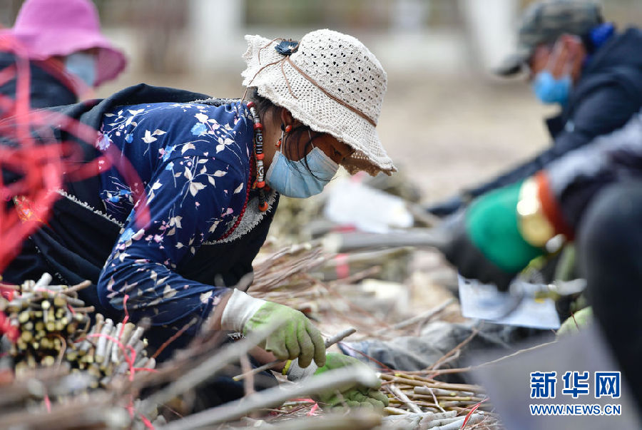 在青海省玉樹(shù)藏族自治州高原千畝林木良種繁育實(shí)驗(yàn)基地,當(dāng)?shù)厝罕娫谇げ逵纾?月29日攝)。新華社記者 張龍 攝