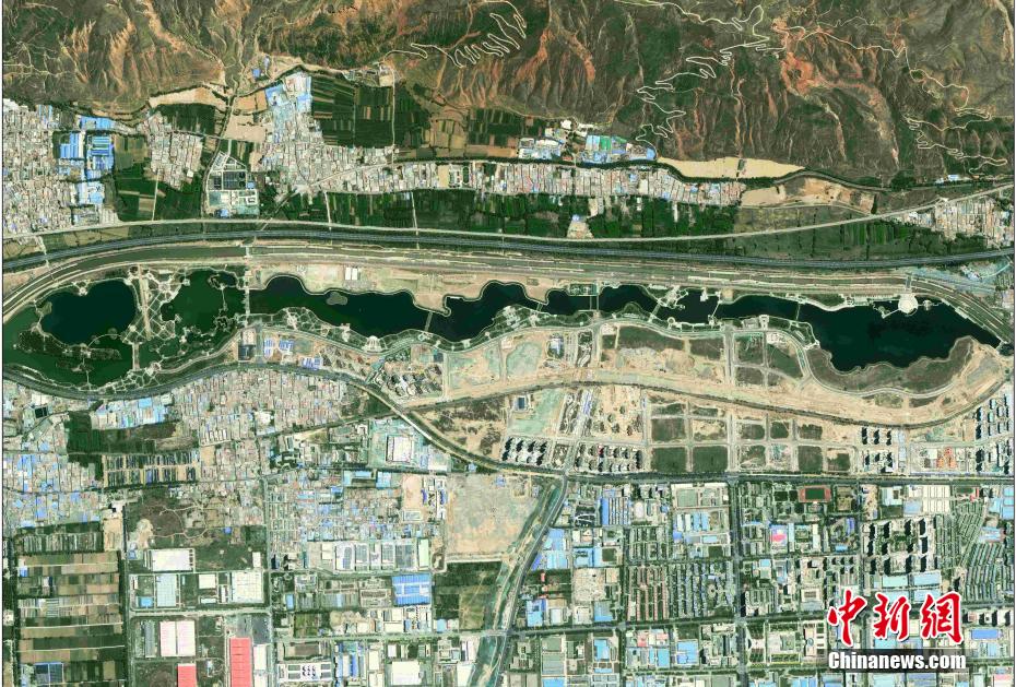 圖為衛(wèi)星視角下的青海省會西寧市的北川河濕地。青海省地質(zhì)調(diào)查院 攝