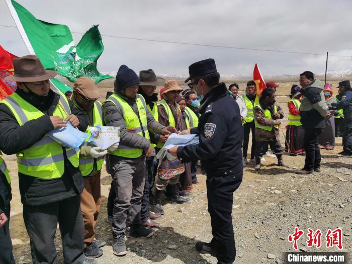 圖為聯(lián)合巡護(hù)組隊(duì)員為轄區(qū)內(nèi)的生態(tài)管護(hù)員進(jìn)行宣傳教育活動(dòng)。瑪多縣委宣傳部