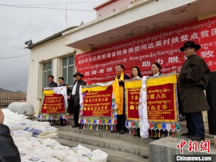 資料圖為青海省稅務(wù)局扶貧工作領(lǐng)導(dǎo)小組成員赴達(dá)英村捐贈(zèng)物資。國(guó)家稅務(wù)總局青海省稅務(wù)局供圖