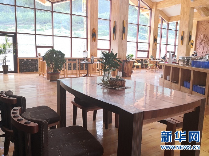 傍晚時(shí)分走進(jìn)高吉村,錯(cuò)落有致的民宿散落山間,落地窗透出暖黃色的燈光。房間里藏式床鋪與原生態(tài)家具相映成趣,靠窗的榻上擺放著茶幾、茶具、綠植,一覽無(wú)余的窗外夕陽(yáng)半落、云飛鳥散。游客接待中心也一改傳統(tǒng)樣式,樓上是純木質(zhì)、開(kāi)放式餐廳,樓下是小橋流水、曲徑通幽的水景,游客們?nèi)齼蓛傻暮戎Х?,享受著?shī)意的人生。