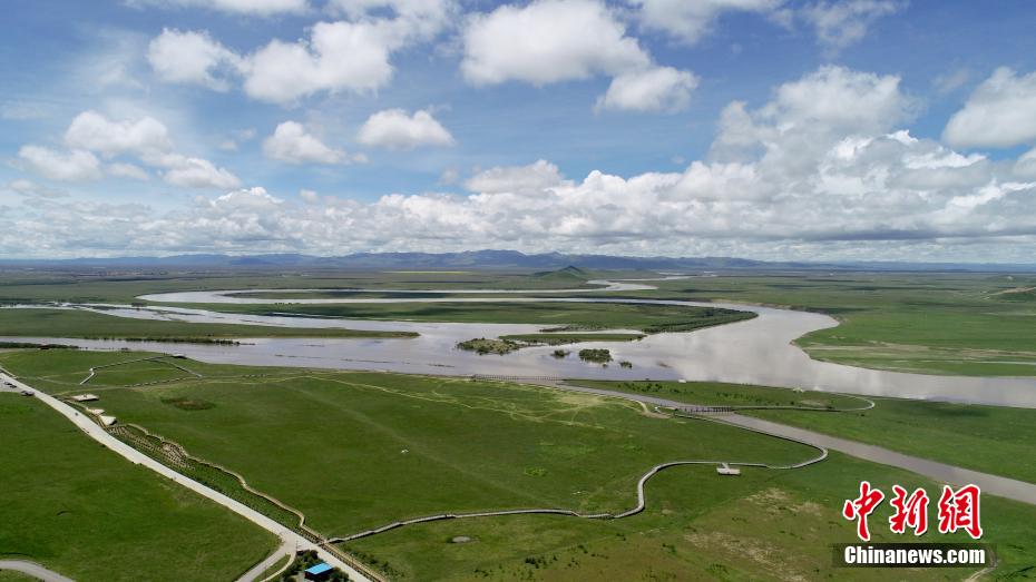 黃河九曲第一灣位于四川省阿壩藏族羌族自治州若爾蓋縣唐克鎮(zhèn),此處是四川、青海、甘肅三省交界處,黃河水在這里形成一個巨大的回灣,被稱為黃河九曲第一灣。黃河和白河將這里的草原分割成無數(shù)河州、小島,水鳥翔集,澄河蜿蜒曲折,清澈的河流水勢平緩,藍(lán)天白云,綠草繁花,帳篷炊煙,牛羊駿馬,盤旋的雄鷹,如詩如畫,氣象萬千。