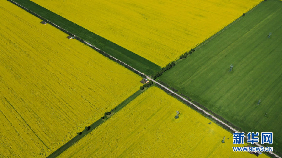 這是7月22日拍攝的門源回族自治縣的油菜花田(無人機(jī)照片)。新華社記者 吳剛 攝